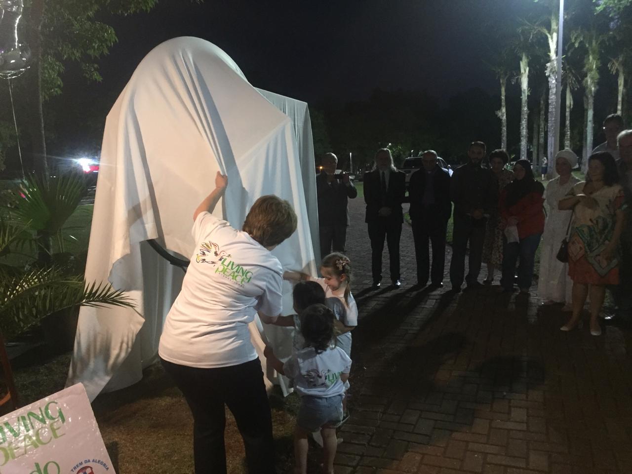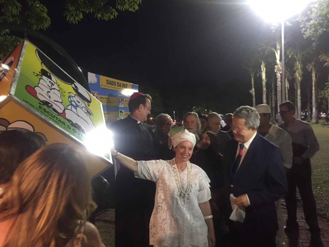 A inauguração do monumento na praça da Catedral foi acompanhada por líderes de 11 religiões de Maringá, que participam do GDI e da Noite de Oração pela Paz. Daniele Ialorixá, do Candomblé, diz que o ‘Dado da Paz’ reforça ainda mais o trabalho realizado pelo grupo.