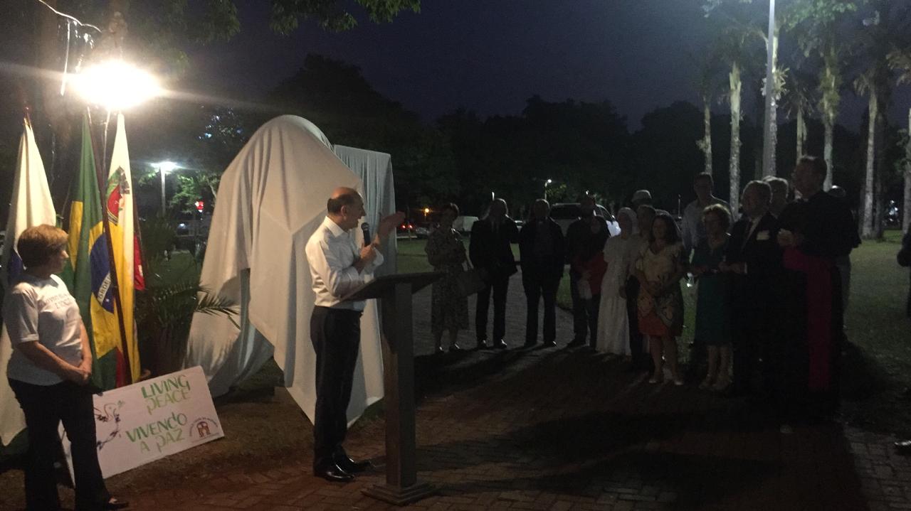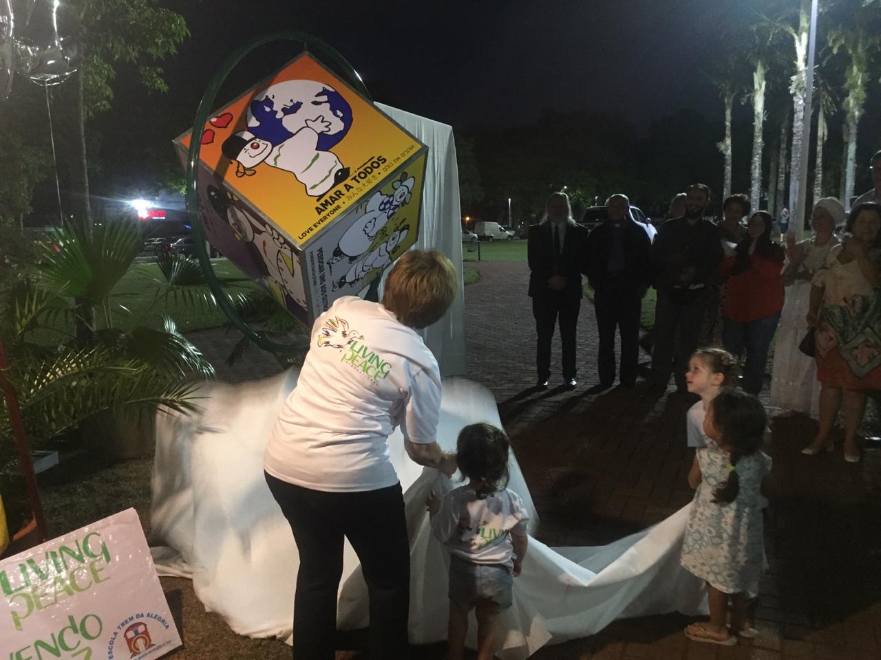 O monumento foi inaugurado nesta sexta-feira (25) na praça da Catedral. A iniciativa é do Movimento dos Focolares da Arquidiocese de Maringá e o do GDI (grupo do Diálogo inter-religioso (GDI), que conta com o apoio da prefeitura. O ‘Dado da Paz’ faz parte do projeto internacional Living Peace, inspirado nos pontos da arte de amar que a fundadora do Movimento Focolares Chiara Lubich propôs. O membro local do Focolares, Francisco Martins, explica.