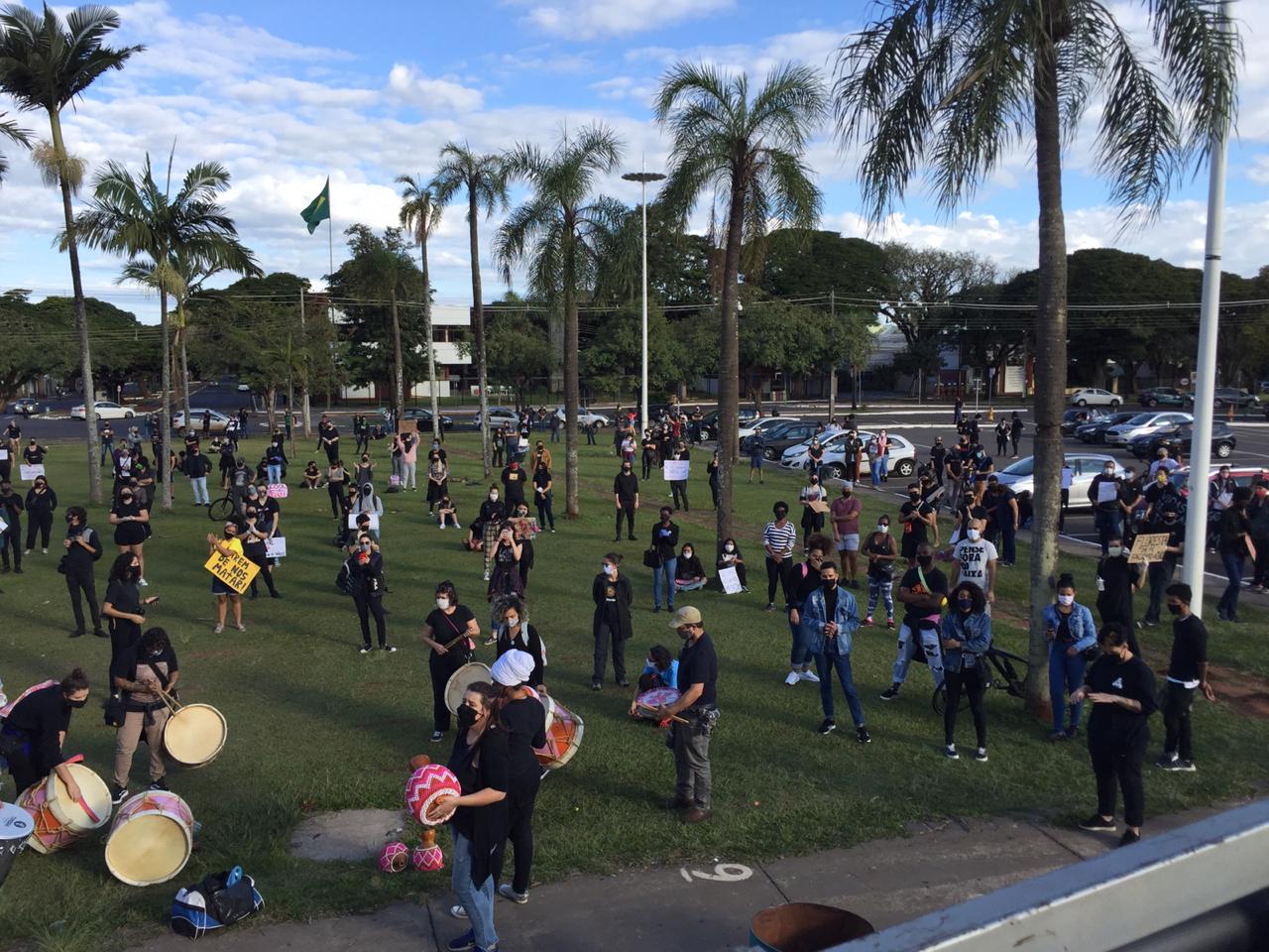 Os manifestantes carregavam cartazes pedindo o fim do racismo, mais amor. Eles estavam vestidos de preto. O microfone de um carro de som ficou aberto - e aí foram feitas críticas ao governo Jair Bolsonaro (sem partido), chamado de fascista, e também aos governos petistas, que não protegeram os indígenas.