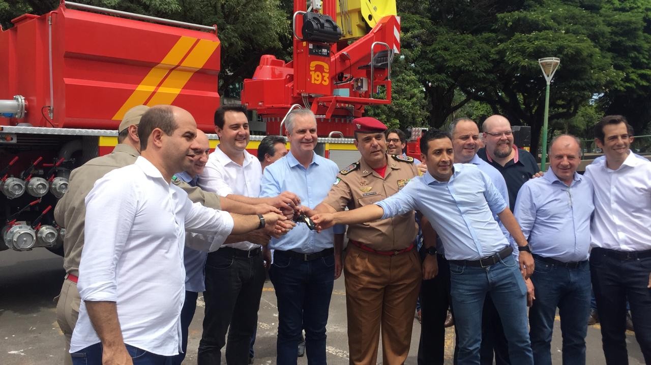 O caminhão tem escada de 54 metros e armazena 5 mil litros de água. O caminhão foi entregue pelo governador do Paraná nesta sexta-feira (14). É uma viatura versátil, diz o comandante do 5 Grupamento do Corpo de Bombeiros de Maringá, Tenente-Coronel Adriano Barbosa.