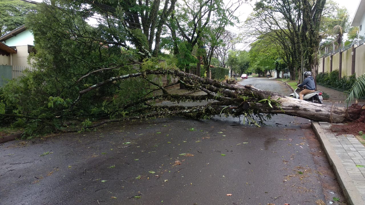 Defesa Civil registrou duas quedas de árvores em ruas de Maringá por causa da chuva durante esse domingo e madrugada de segunda-feria (17). Uma foi na Rua Felipe Camarão, na Zona 02 e a outra no cruzamento das ruas Alziro Sagantin e 8 de Setembro. Ninguém se feriu.