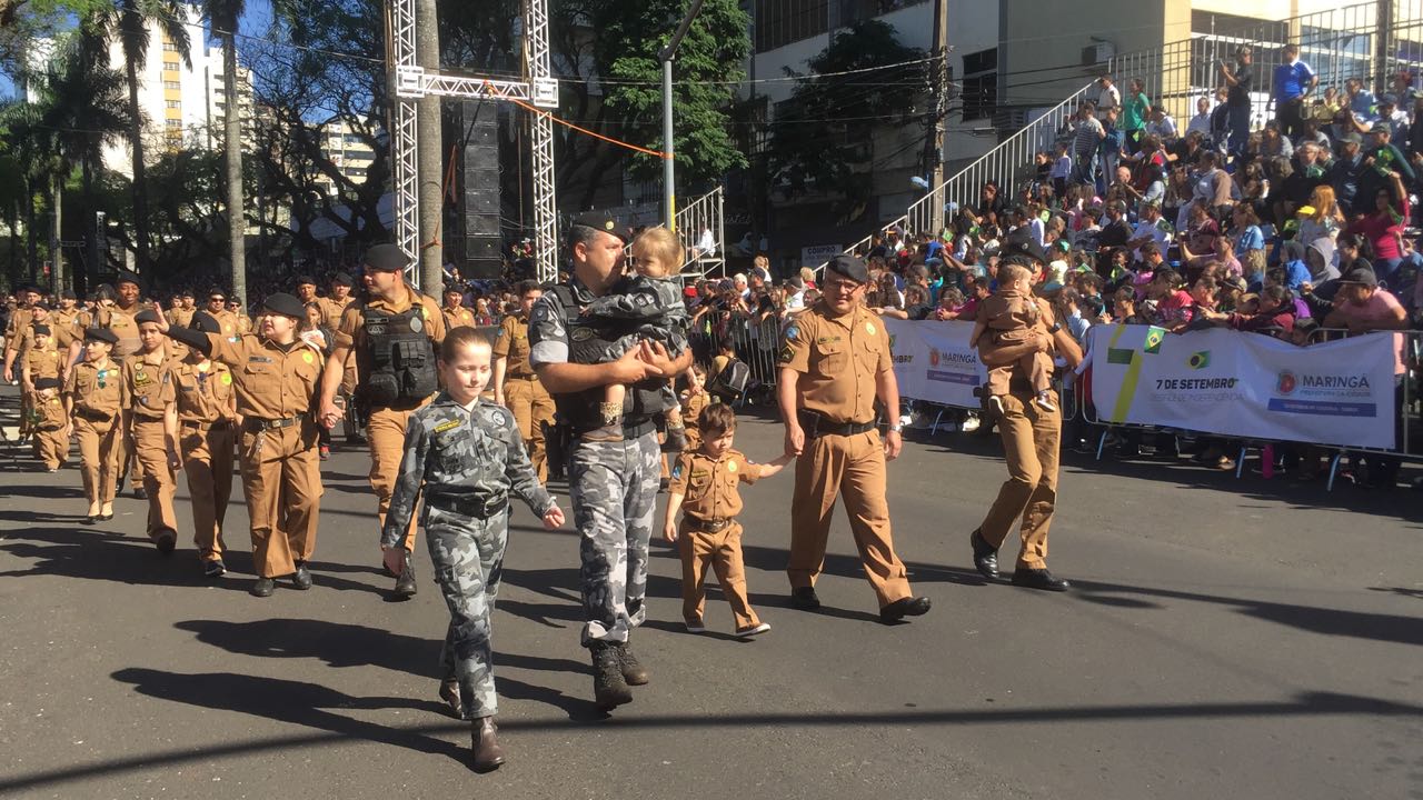 De acordo com a prefeitura, o desfile cívico-militar desta sexta-feira em Maringá contou com a presença de mais de 15 mil pessoas. 2,5 mil assistiram as apresentações sentadas em arquibancadas montadas em frente ao paço municipal.