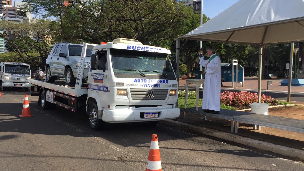 Além dos veículos de passeio, empresas de transporte de Maringá enviaram a frota toda para receber a benção de São Cristóvão. O motorista de um dos caminhões era o José Maria Barbosa, que está há 32 anos na profissão. Ele reconhece os perigos da estrada e agradece ao santo pela proteção que sempre teve.