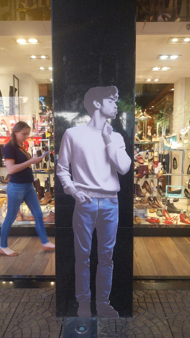 Numa das entradas do Shopping Avenida Center a intervenção é de um rapaz que oferece as flores.
