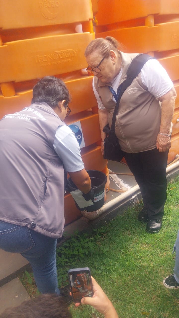 Dentro dele tem água com um larvicida biológico que só faz mal ao mosquito Aedes aegypti.