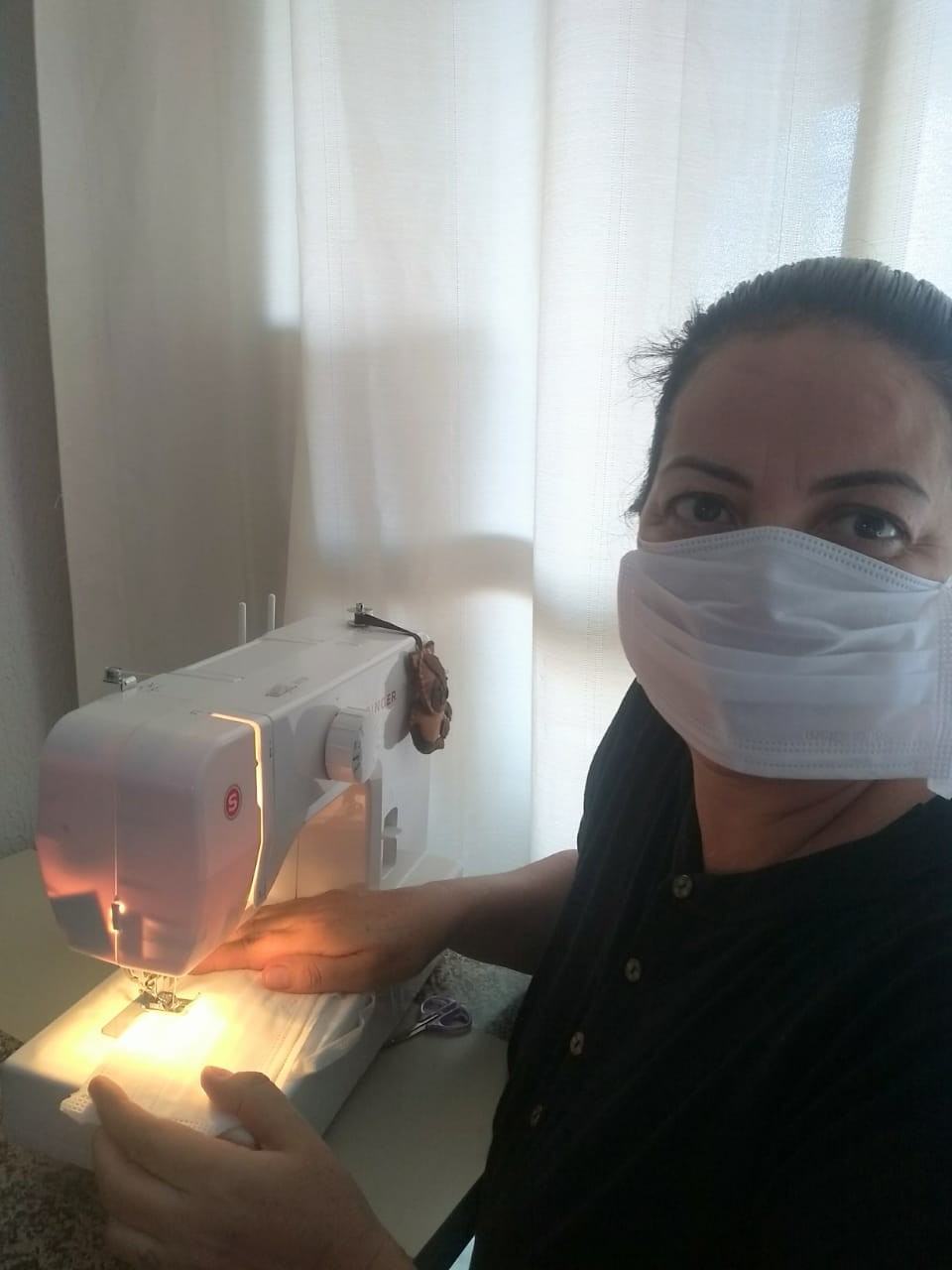 Uma das voluntárias é a aposentada Mina Vasconcelos. Isolada, por conta da Covid-19, ela disse que o fato de poder fazer algo para ajudar o outro, tem melhorado a vida dela. Para Mina, que costura há muitos anos, não é difícil fazer esse trabalho. [ouça no áudio acima]