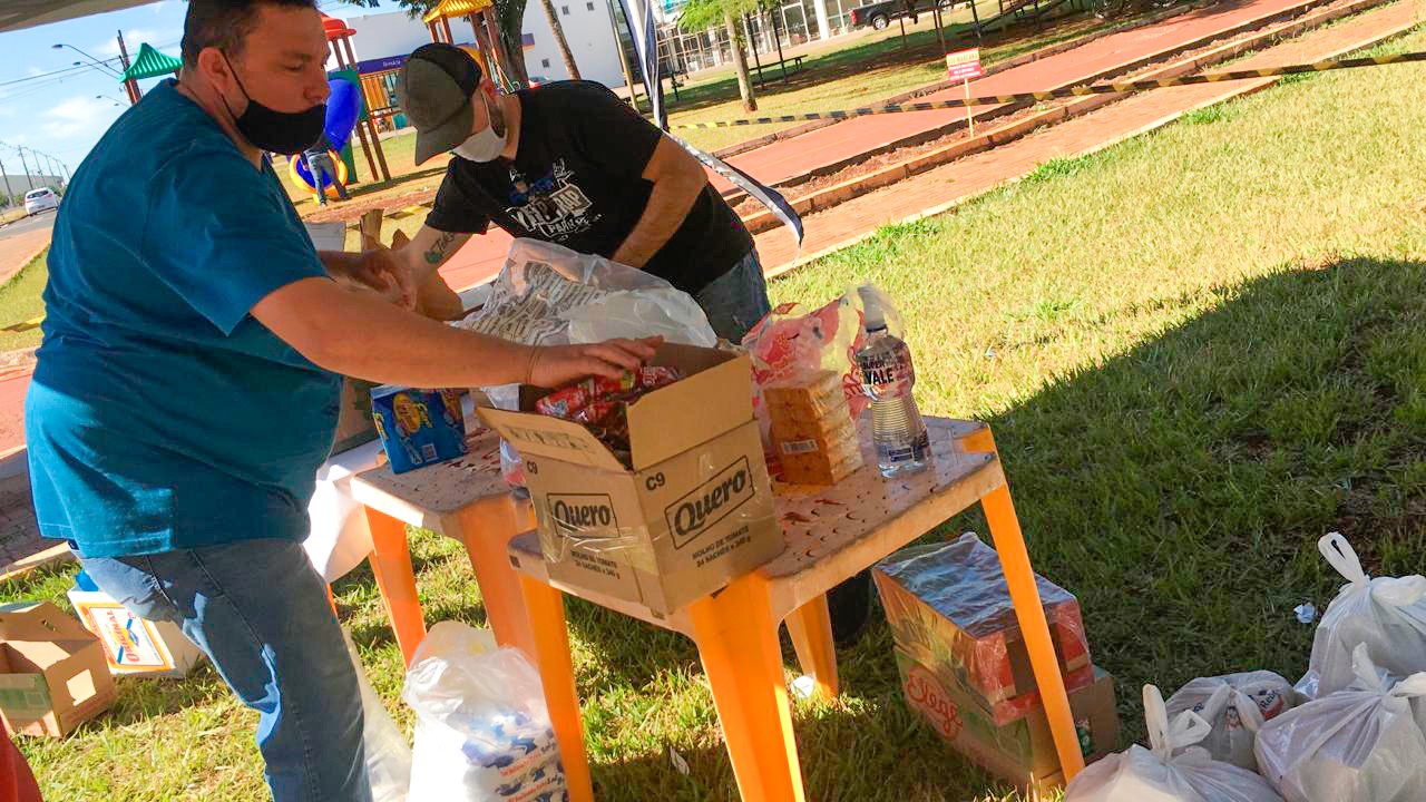 A iniciativa dos amigos voluntários é bem simples: eles arrecadam alimentos e na sequência doam para quem precisa. Na praça, os voluntários montaram um ponto para a coleta dos alimentos e a doação das cestas.