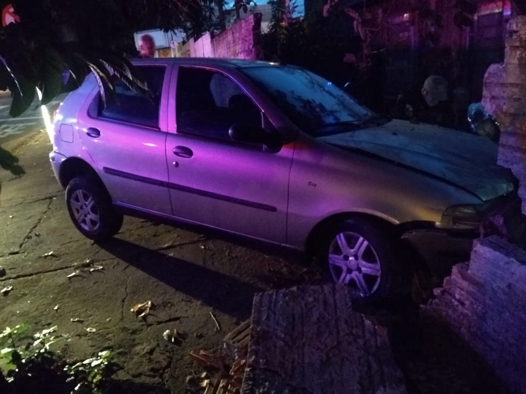 Condutora de 50 anos fica ferida após batida contra muro de residência