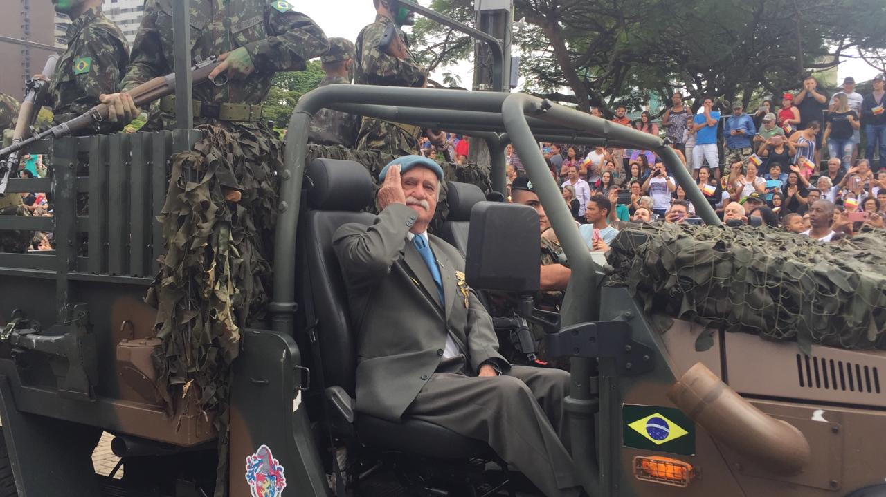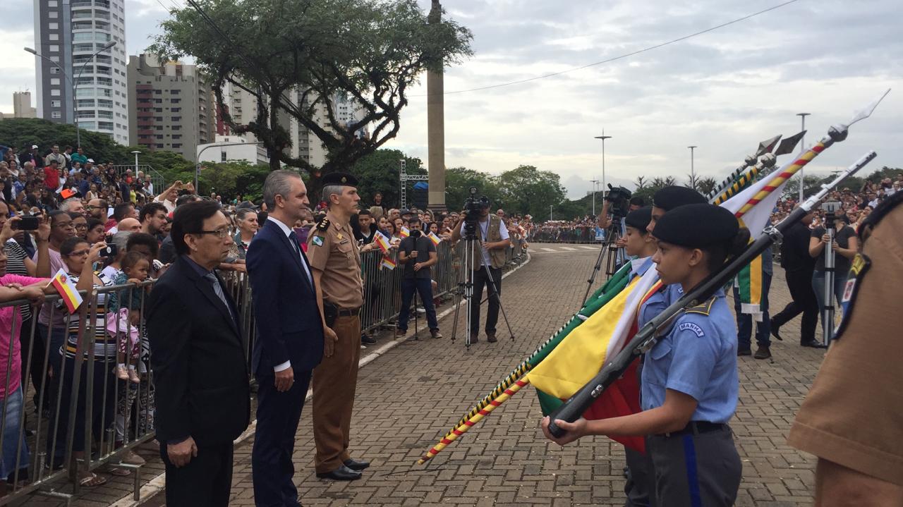 Manhã de céu nublado e aos poucos milhares de pessoas ocuparam as arquibancadas e os espaços ao longo da Avenida Tiradentes, em frente à Catedral. Uma das novidades do desfile de aniversário de Maringá este ano. O seu João Francisco Ros, gostou.