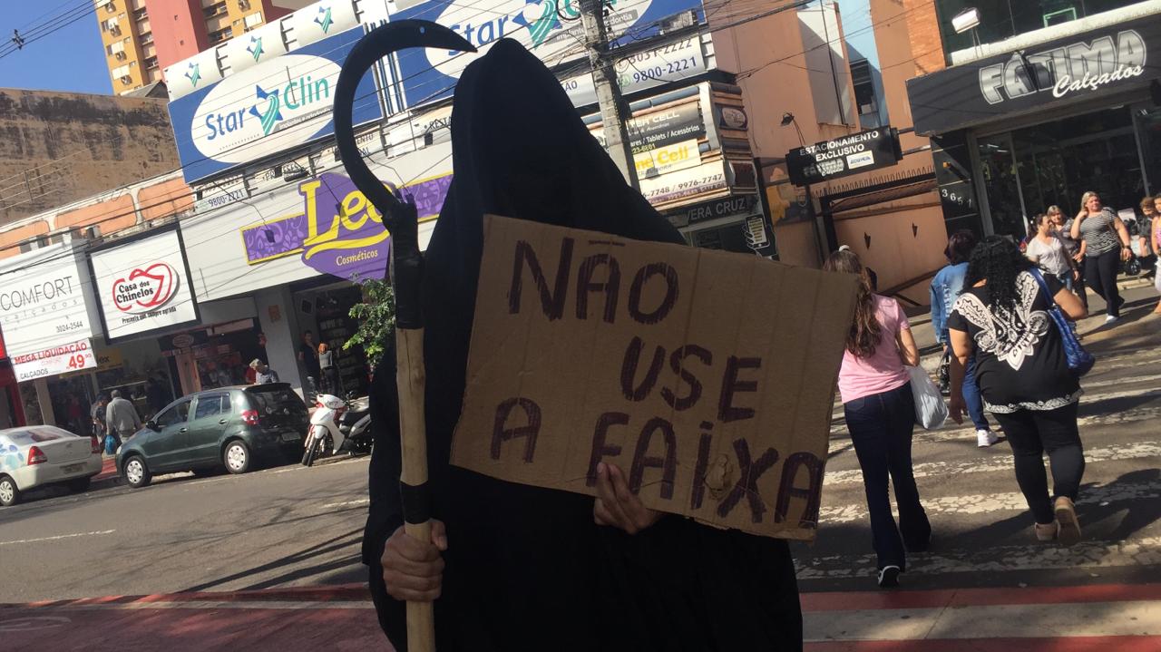 A morte está lá, convidando pedestres para atravessar fora da faixa. Mas os pedestres continuam o caminho pela faixa de segurança.