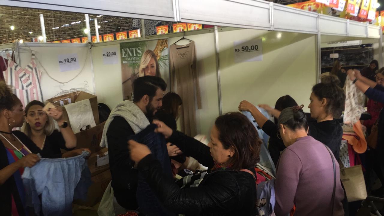 A Feira começou nesta quarta e vai até sábado. São 120 lojistas em 270 estandes. A entrada é de graça. Os descontos atrativos, e é possível comprar peças a partir de dez reais. Muitos estandes são lojas de fábrica que vendem a preço de custo e parcelado. É o caso da loja de jaquetas de couro da Josiane Daldoso.