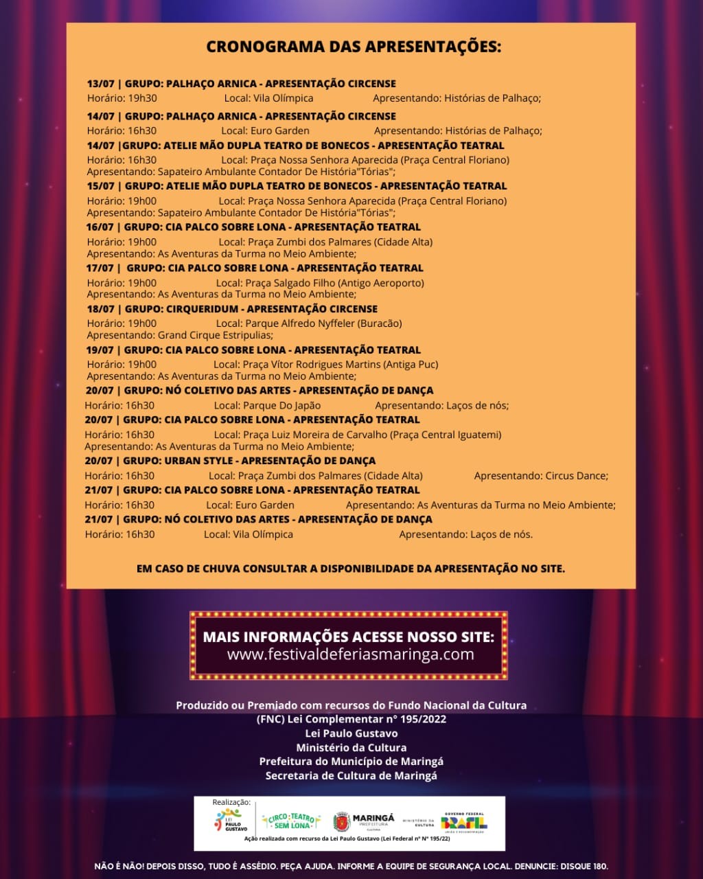 Confira a programação no site: www.festivaldeferiasmaringa.com