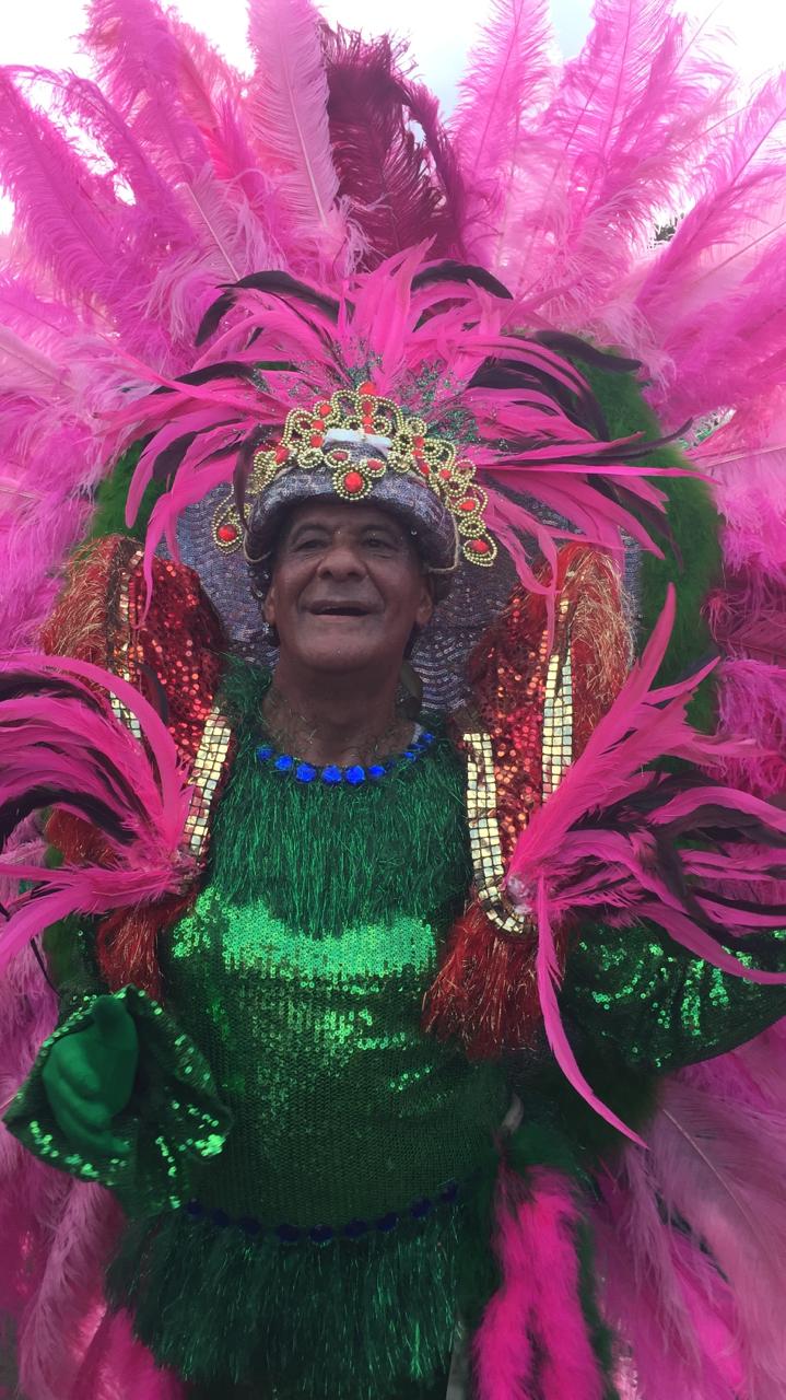 Em meio a tantos jovens o Audi Amorim, com a experiência de muitos carnavais, vestiu uma fantasia de escola de samba, cheia de plumas e lantejoulas