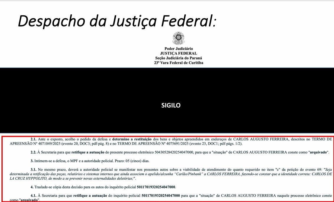 Para o secretário de Fazenda, a Polícia Federal o confundiu com o verdadeiro presidente da fintech, que também se chama Carlos. [ouça o áudio]