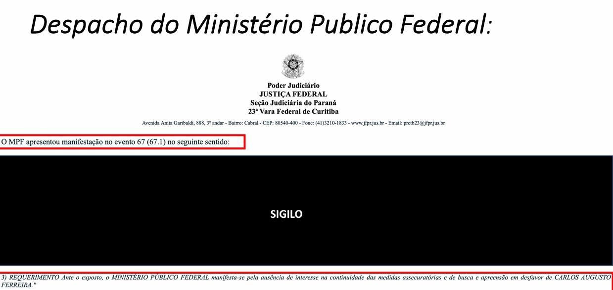 O Ministério Público Federal não manifestou interesse em questionar a decisão da Justiça.