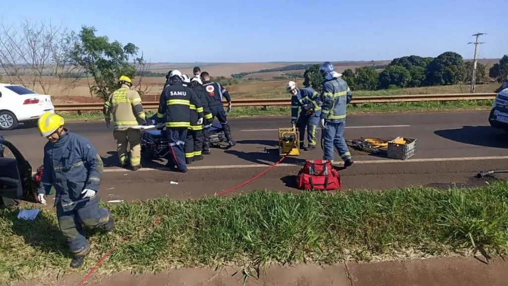 Um grave acidente foi registrado na manhã desta terça-feira (10), na PR-323 em Paiçandu. Um veículo, com mãe e filho, capotou e ficou completamente destruído.