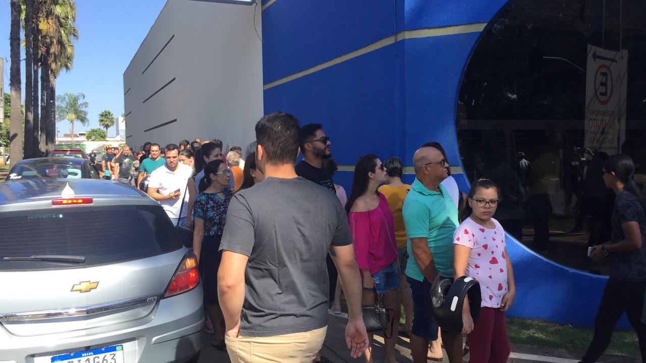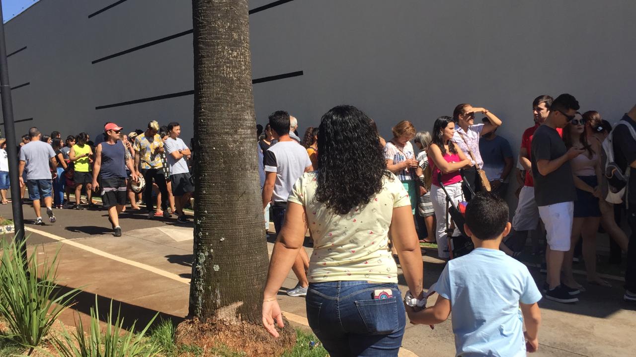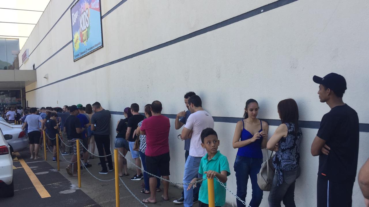 A fila do lado de fora do shopping onde está sendo realizado o bazar não para de aumentar. Já falta espaço para tanta gente. A fila dá voltas e mais voltas. Mil senhas já tinham sido distribuídas antes da abertura do bazar, às 10h.