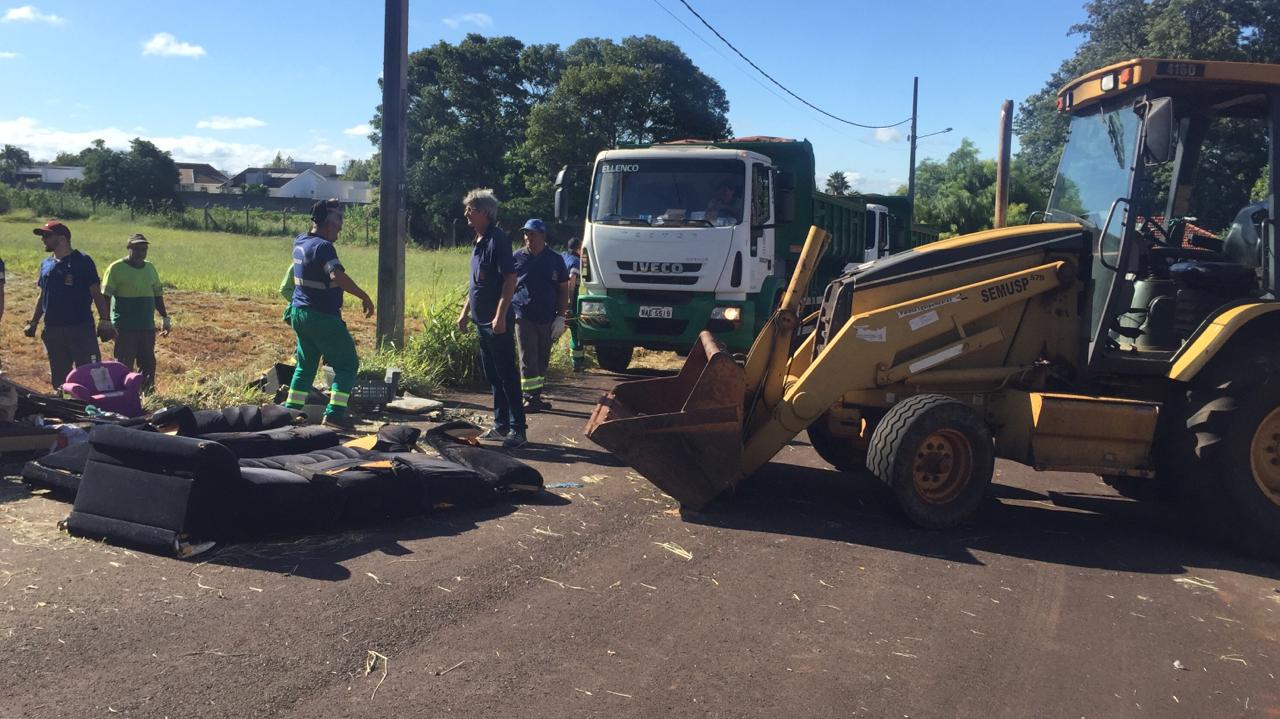 É o segundo mutirão de limpeza para eliminar os criadouros do mosquito transmissor da dengue. O primeiro foi na zona norte de Maringá, região onde estão os bairros com maior incidência de focos do Aedes aegypti. Desta vez é a zona sul que recebe as máquinas e caminhões da prefeitura. 40 veículos percorrem 11 bairros retirando o lixo que foi despejado pela população. São 240 servidores da secretaria de Serviços Públicos e 60 agentes de combate a endemias, diz a gerente de Serviços Públicos, Maria Lígia Guedes.