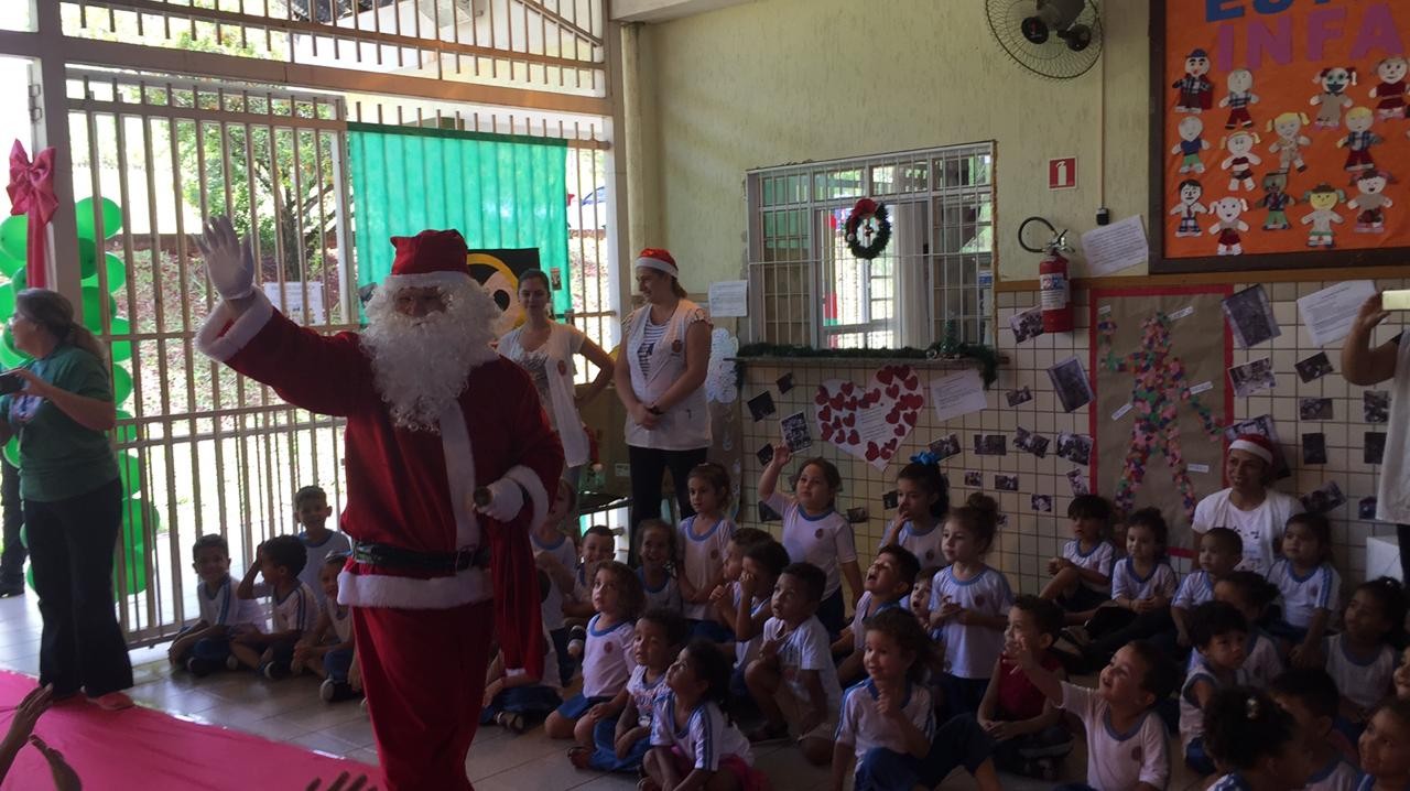 O Papai Noel, aquele senhor de barba branca e bonzinho que carrega um monte de presentes chegou atrasado. As crianças do Centro de Educação Infantil Tereza Leonel, no Parque Tarumã, estavam ansiosas. mas elas entenderam a explicação: as renas do Papai Noel tinham parado para descansar, afinal a viagem do Polo Norte até aqui é longa. E o sorriso tomou conta da criançada quando o tão esperado convidado chegou, e chegou cheio de presentes. A Bianca e o Emanuel abriram correndo.