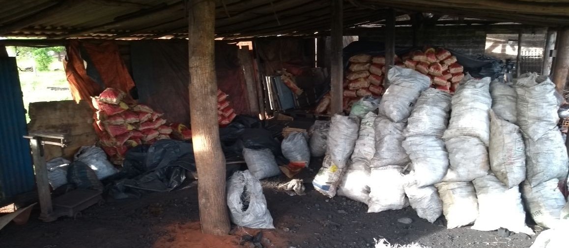 Durante o patrulhamento na área rural de Tapira os policiais encontraram nove fornos de carvão vegetal em funcionamento. Também acharam 150 sacos de 6 quilos do carvão para a venda, além de equipamentos de empacotamento.