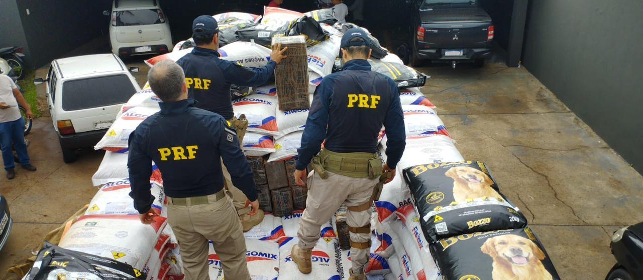 A droga estava escondida debaixo de uma carga de ração num caminhão que foi abordado para fiscalização na Unidade Operacional da PRF.